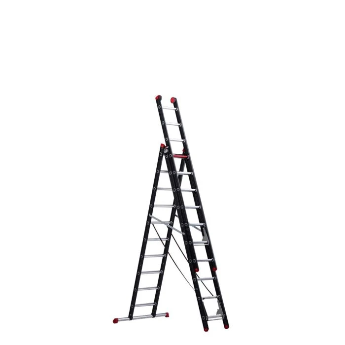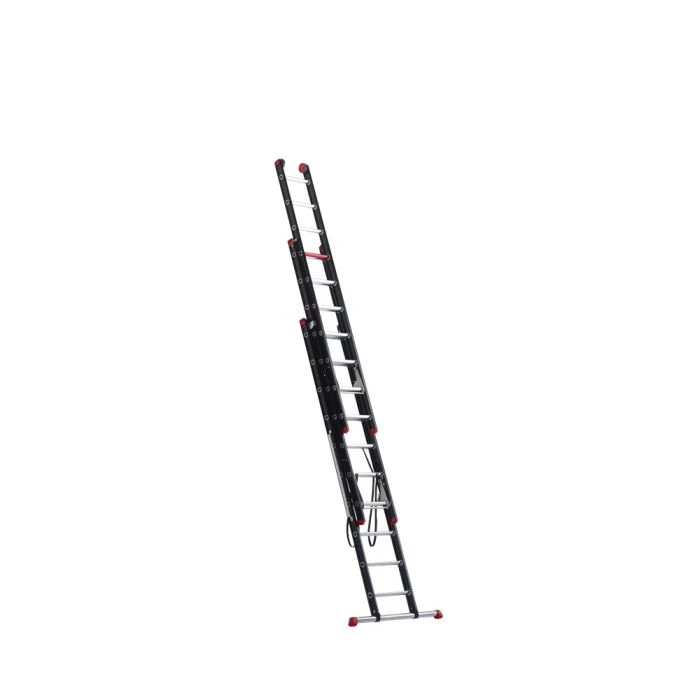 De Mounter reformladder is verkrijgbaar in een 2- en 3-delige uitvoering, in uiteenlopende lengtes tot wel 9,35 meter. De 3-delige reformladder schuif je ook nog eens makkelijk uit door de toprollen.
