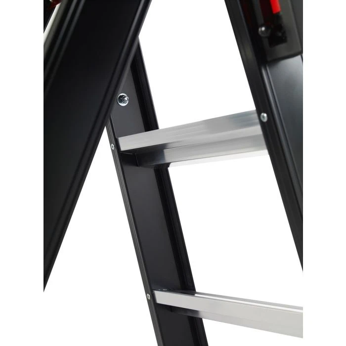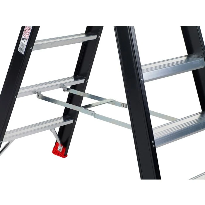 De optionele steunbeugel biedt je extra veiligheid. In 2 seconden klap je de beugel in zodat je de trap compact kan transporteren. Door de drukvaste spreidbeveiliging (vanaf TDO 2 x 3) weet je zeker dat de trap niet ongewild inklapt. Bovendien sta je stevig en stabiel door de grote antislip-voeten. Een trap op het hoogste niveau.