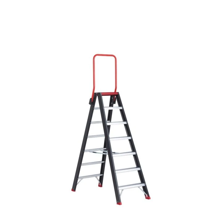 De trap met top eigenschappen. Dubbel oploopbaar dus aan beide zijden te gebruiken. Gebruiksvriendelijk en robuust. Speciaal voor de professional die meer vraagt. De Taurus is gemaakt voor intensief gebruik. Het unieke scharniersysteem van het bordes maakt de trap opvallend veilig in gebruik.