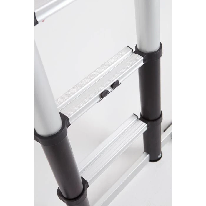 Met deze telescopische ladder werk je altijd veilig. Door de extra diepen sporten sta je altijd veilig en stabiel.