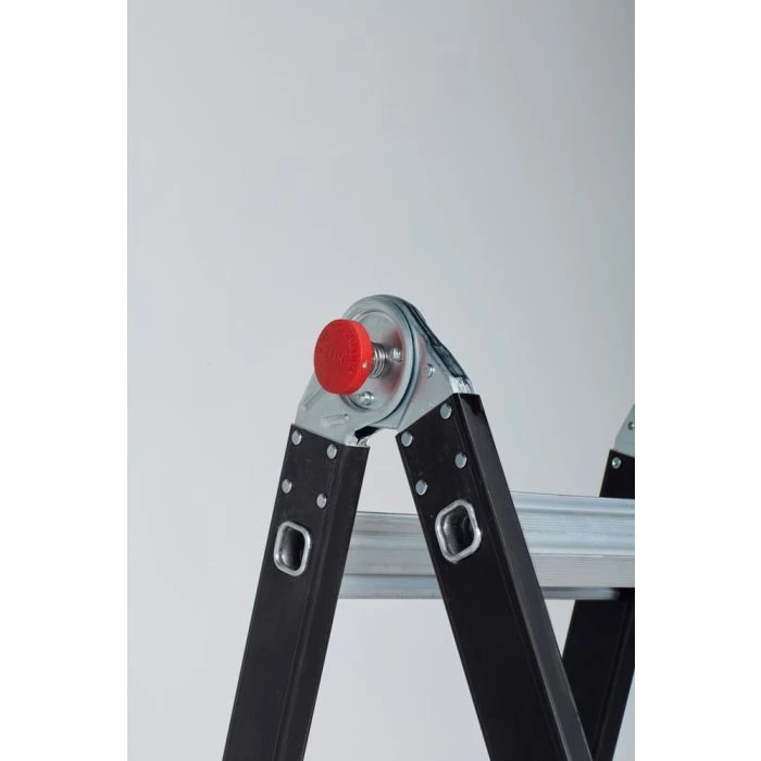 Dankzij de uitgebogen bomen met antislip voeten sta je altijd stevig en stabiel. Bovendien borgt het unieke 3-PIN autolocking® scharniersysteem de vouwladder in elke positie. Veiligheid gegarandeerd! De kenmerkende zwarte coating is naast mooi ook nog eens vuilafstotend.