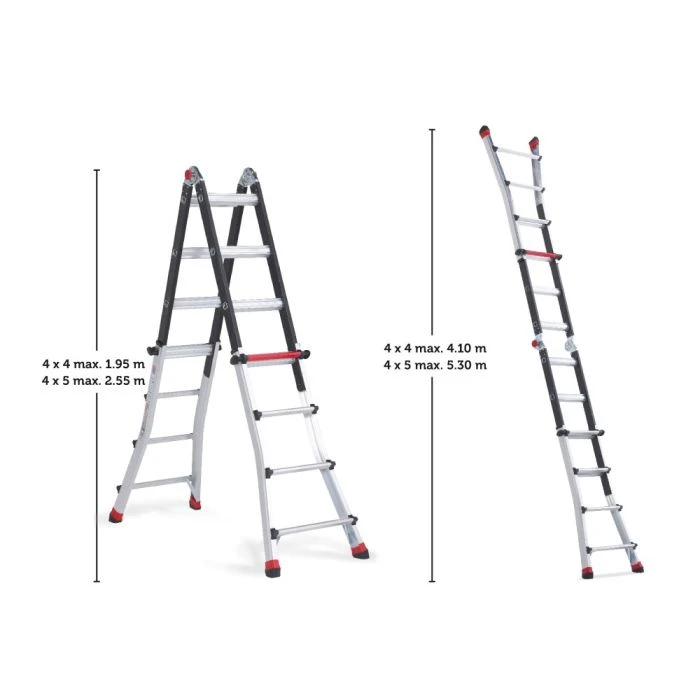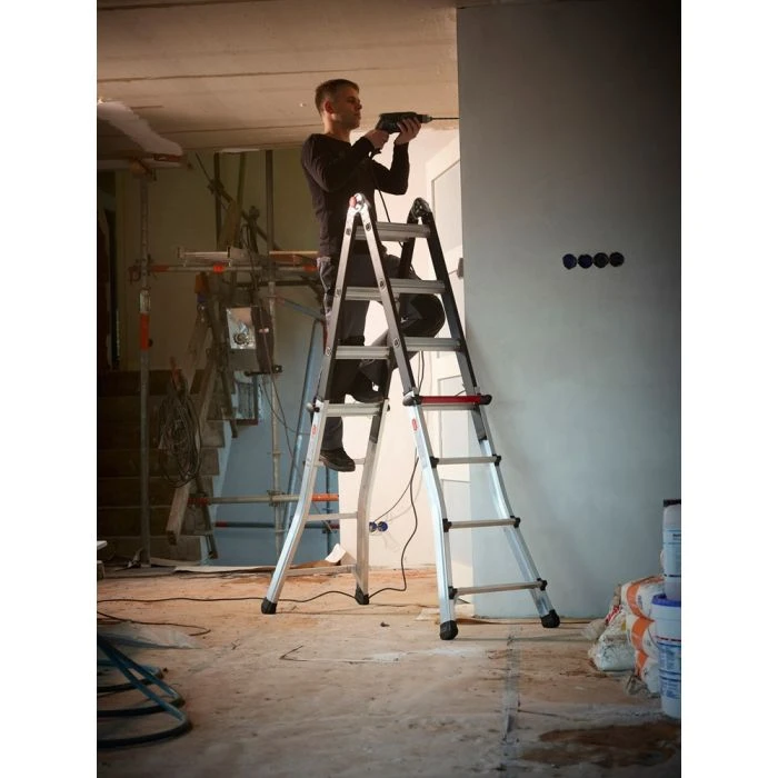 De Varitrex Teleprof zet je eenvoudig in een ander stand: A-stand of ladderstand. Ook ideaal op ongelijke ondergrond door het telescopisch mechanisme.
