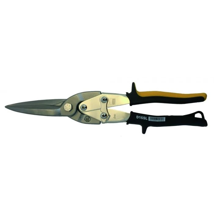 Blikschaar GEEL lange bek figuur. Rechtdoor knippend, large. Op SB kaart