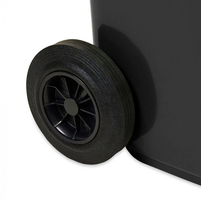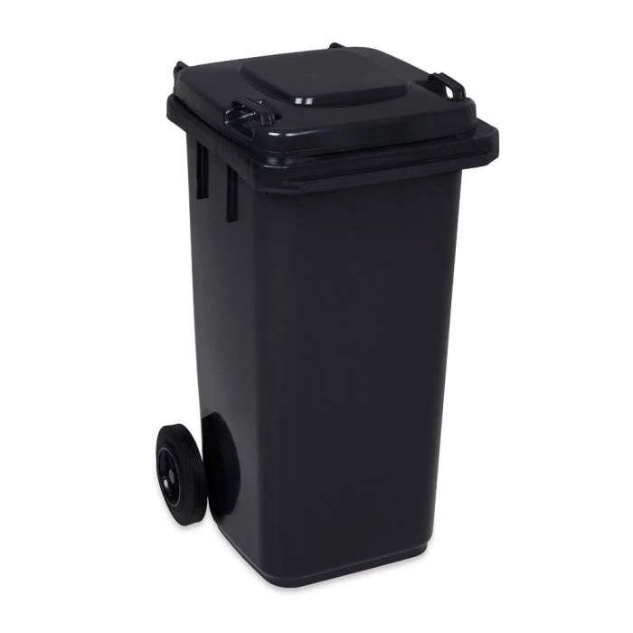 Deze afvalcontainer heeft een inhoud van 120 liter en is uitgerust met twee handgrepen aan de zijkanten voor gemakkelijk verplaatsen. Het is verkrijgbaar in verschillende kleuren, waaronder grijs, zodat u kunt kiezen voor de kleur die het beste past bij uw omgeving.