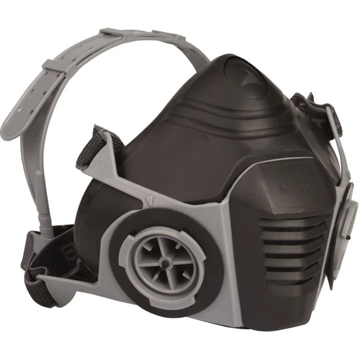 Comfort halfgelaatsmasker uit drie componenten: masker uit thermoplastisch elastomeer (TPE) – filteraansluitingen uit polyethyleen met hoge densiteit (HDPE) – beschermcarter voor de klep uit polypropyleen (PP). Elastische bindertjes. Voorzien voor 2 filterpatronen uit de serie M6000, afzonderlijk verkrijgbaar. Blisterverpakking. TPE halfgelaatsmasker. Elastische bandjes.