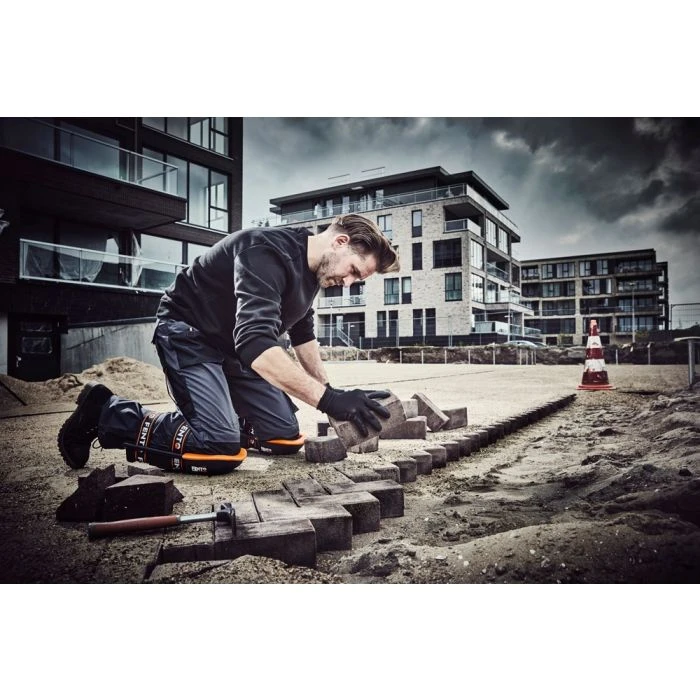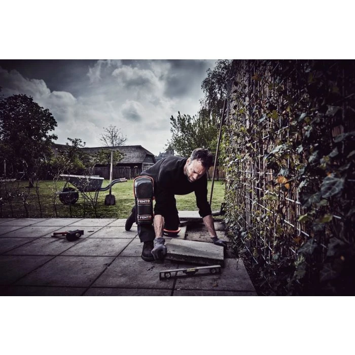 Ergonomische kniebeschermer. Merk FENTO – knee protector type 400 Pro / MAX Lengte 43 cm. De buitenlaag is gemaakt van slijtvast Ethyleen Vinyl Acetaat. Succesvolle kniebeschermer met zeer groot ergonomisch comfort. 100% waterdicht, nog comfortabeler en slijtvaster. De ademende inlay (artikelnummer 960698) is nu ook vervangbaar. Lichtgewicht: 470 gram. De brede elastieken zorgen voor een aangenaam gevoel en knellen niet af. Voorkomt knie- en rugklachten door drukverdeling. Aanbevolen door arbo-artsen en fysiotherapeuten.