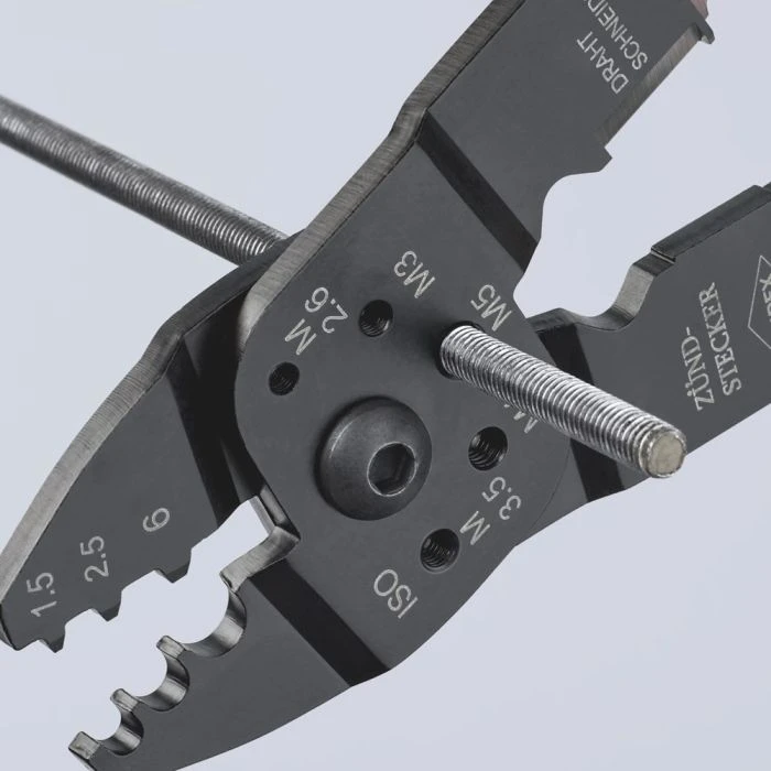 - Voor het knippen van kabels, het afstrippen van draden en het krimpen van geïsoleerde en niet-geïsoleerde kabelschoenen, aansluitstekkers en open aansluitstekkers