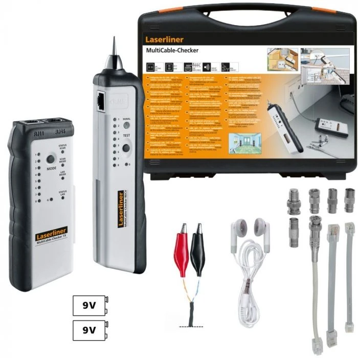 - Testapparatenset met zender en ontvanger voor LAN-, SAT-, TV-, telefoon-, audiokabels