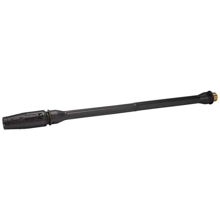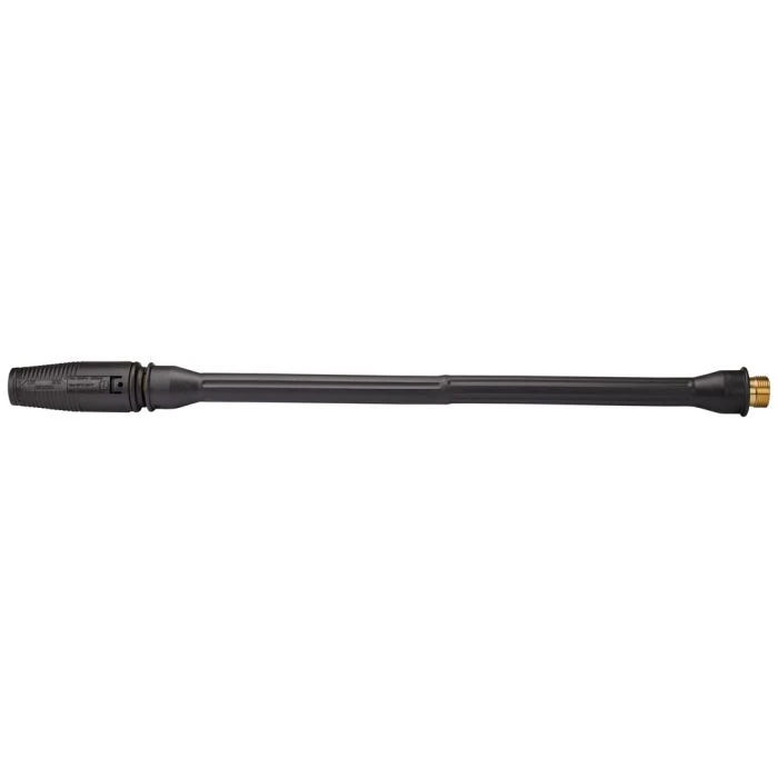 De spuitlans is doormiddel van de instelbare sproeimond in te stellen van een puntstraal naar een brede waaier.