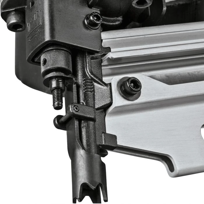 Uitgerust met een keuzesysteem voor enkelvoudig of continu schieten.Magazijn voor strip van 64 – 73 nagels. Makkelijke diepte-instelling met draaiwiel, instelbaar zonder gereedschap.Geschikt voor zwaar constructiewerk: houtskeltbouw, dakspanten, (euro)pallets.Beveiliging tegen droog schieten, stopt automatisch bij de laatste paar nagels en voorkomt zo schade aan het werkstuk.Nagellengte vanaf 50 mm t/m 90 mm.