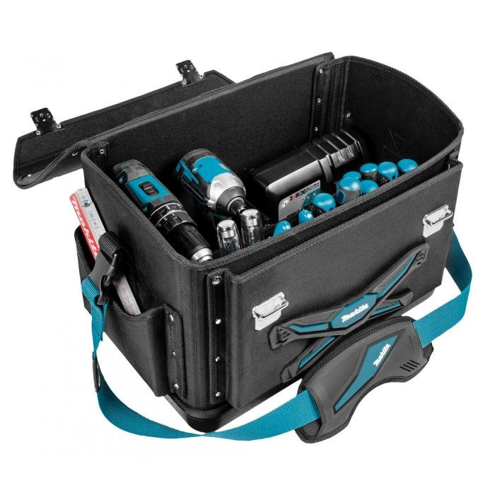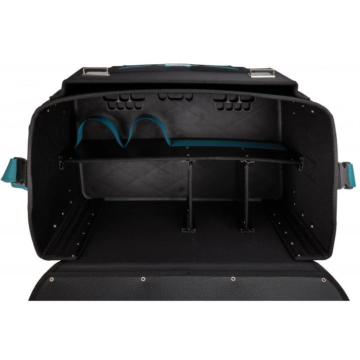 Het hoofdcompartiment is zelf in te delen, en er is plaats voor 2 boor/(slag) schroefmachines en een oplader.