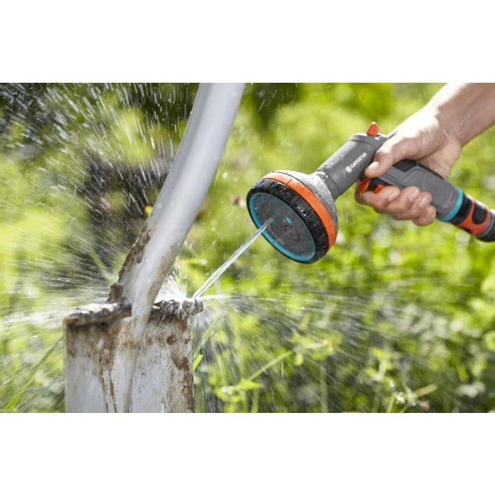 De GARDENA Comfort Multi Broes is ideaal voor diverse bewaterings- en reinigingsklussen. Bij deze broes is de waterstraal instelbaar in vijf standen. De nevelstraal is perfect voor het bewateren van zaaigoed. De zachte straal of broesstraal zorgt ervoor dat de bloembedden goed kunnen worden bewaterd. De harde straal is voor reinigingswerkzaamheden. De softgrip componenten zorgen voor een slipvaste grip op de Comfort multibroes. De ergonomisch vormgegeven impulshendel kan met de geïntegreerde knop worden vastgezet. De waterstraal is met 1 vinger traploos in te stellen. Een geïntegreerd filter zorgt er voor dat er geen vuil in de broes zelf kan komen. Dit filter kan eenvoudig worden losgehaald en gereinigd. De broes is vorstbestendig en daardoor ook bestand tegen temperaturen onder het vriespunt..