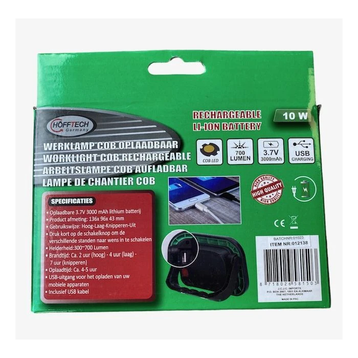 Kortom, met de Hofftech werklamp 012138 ben je altijd verzekerd van helder licht én een volle batterij! Of je nu aan het klussen bent in je garage, in de tuin of op een bouwplaats, deze lamp zal je nooit in de steek laten en zorgt ervoor dat jij je volledig kunt concentreren op je werk.