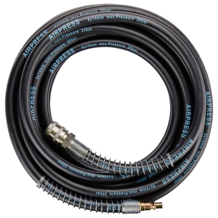 Luchtslang met een lengte van 10 meter en een diameter van 8 mm. Deze luchtslang kan gebruikt worden in combinatie met Makita luchtmachines uit de 8 bar lijn en de 10 bar compressoren.