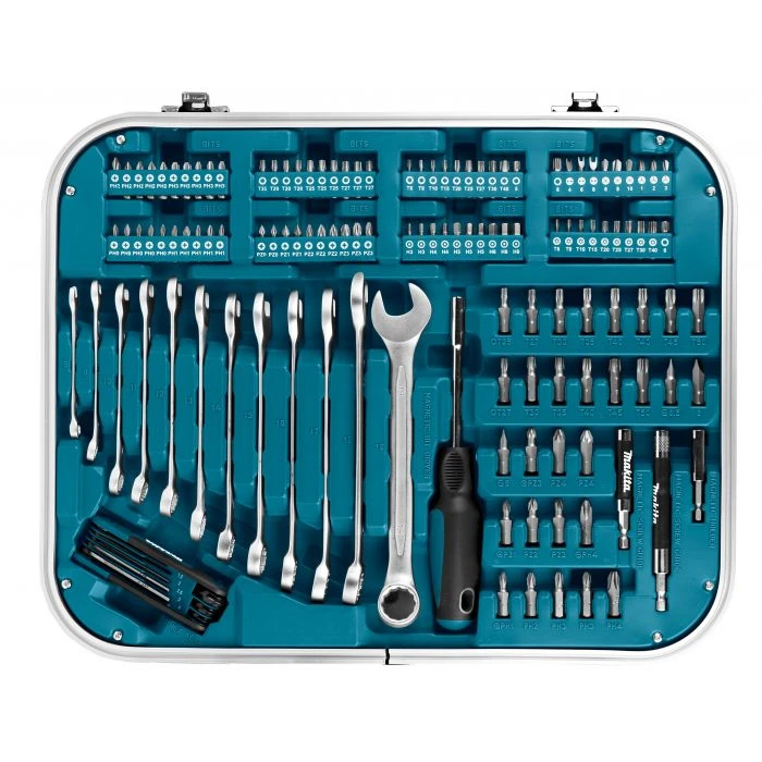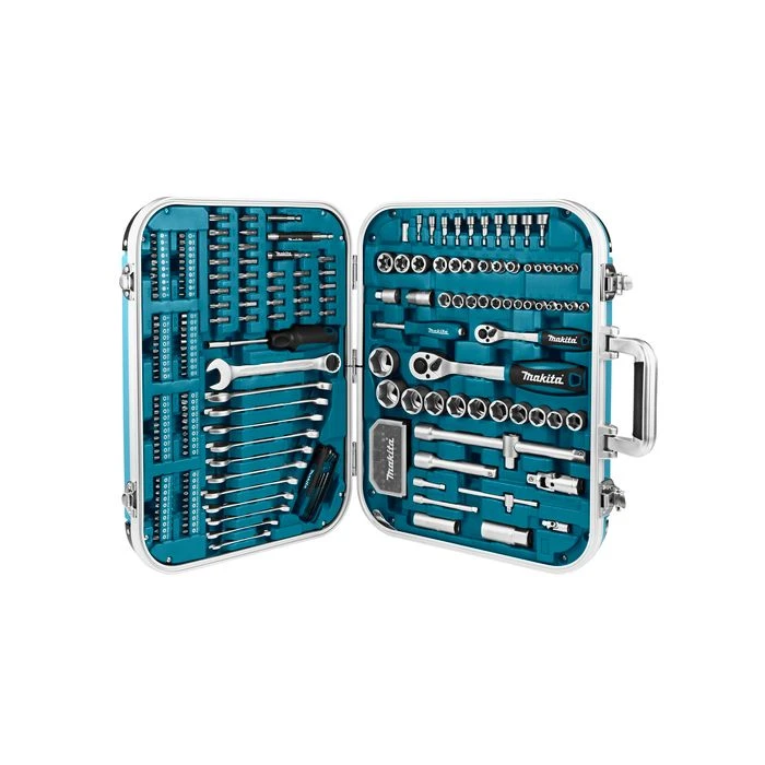 Bestaande uit: 139 bits in diverse maten, 2 schroevendraaiers, 3 bitadapters, 12 ring-/steeksleutels, 1 inbusset, 2 ratels (1/4″ en 1/2″), 48 doppen in diverse maten, 2 verlengstukken, 2 bougiessleutels, 3 dopadapters, 2 cardankoppelingen en een aantal diversen.