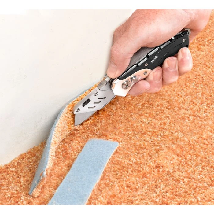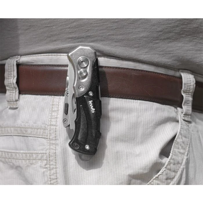Extra scherp zakmes met zakmeslemmet en verwisselbare trapeziumvormige cutter, veilige vergrendeling, optimaal gebruiksgewicht, zware metalen behuizing, met praktische riemclip