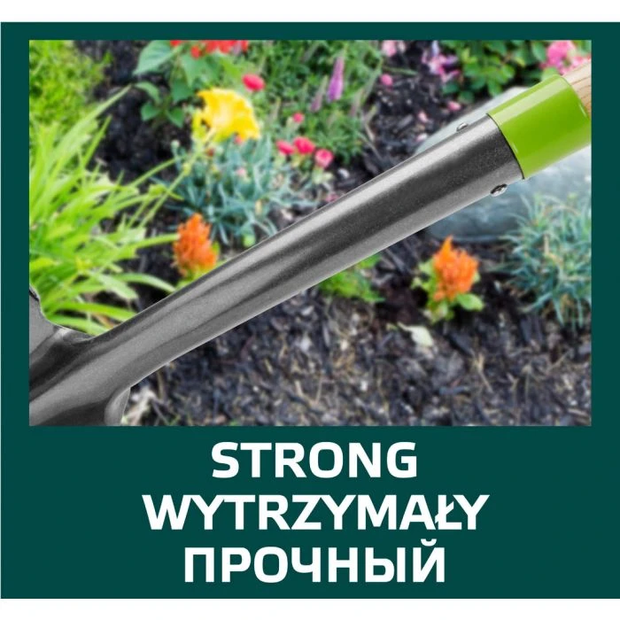 VERTO Drainagespade, sleuven spade (Ref. 15G014) met een totale lengte van 1280 mm. Ideaal voor het graven van gleuven voor kabels, drainageslang ook deaal voor ontwortelen van bomen, gecontroleerd wrikken mogelijk, vooral bedoeld voor tuin- en bouwwerken. De kop is van hoogwaardig gehard staal, puntig. Het handvat is gemaakt van massief hout, afgewerkt met een kunststof handvat uit twee stevige materialen, ligt stevig in de hand dit wat het werkcomfort van het gereedschap verhoogt. Metalen versterking op de plaats die het meest kwetsbaar is voor beschadiging (verbinding van de as met de kop). Brede, geprofileerde voetsteunen verhogen het werkcomfort.