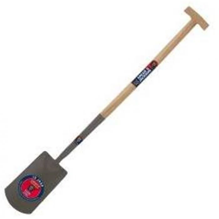 Deze spade is geschikt voor het spitten in aarde en zware kleigrond. De spade heeft een zwanenhals blad dit houdt in dat de steel meer stevigheid heeft doordat het hout diep in het huis van de zwanehals zit. Hierdoor kan hij niet zo gemakkelijk breken, en kan hij dus zwaarde grondsoorten aan. Het blad van de spade dient recht of bijna recht tot de rand in de grond te worden gestoken. Dan trek je de greep bij de schacht naar achteren om de grond los te werken. Als je de juiste lengte van de steel hebt uitgezocht sta je hierbij recht op. Buig dan je knieën en til nu de schuin staande spade met grond op door je knieën weer te strekken. Het buigen van de knieën is belangrijk voor het sparen van je rug.