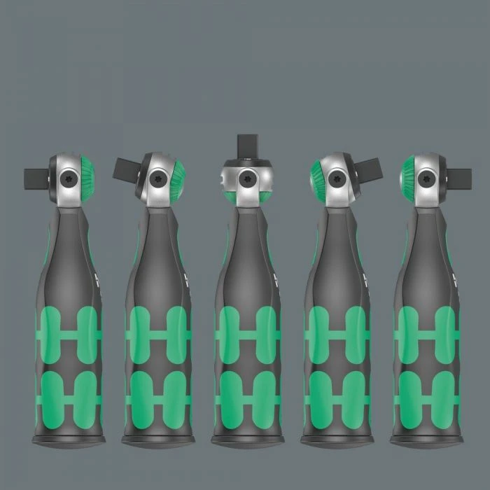 Vrij zwenkbare ratelkop met 5 vaste standen
